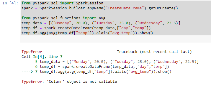 In this blog post, we learned about one specific cause of the “Column not callable” error in PySpark: misspelling the alias keyword in the agg function. This error occurs when you try to call a column as if it were a function. To fix this error, you need to correct the spelling of the alias keyword. We also saw an example of how to calculate the average value of a numeric column in PySpark without encountering this error.